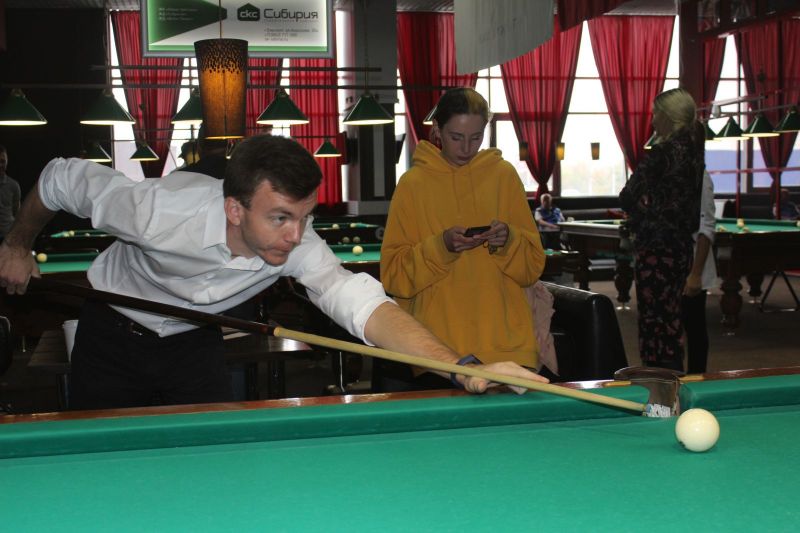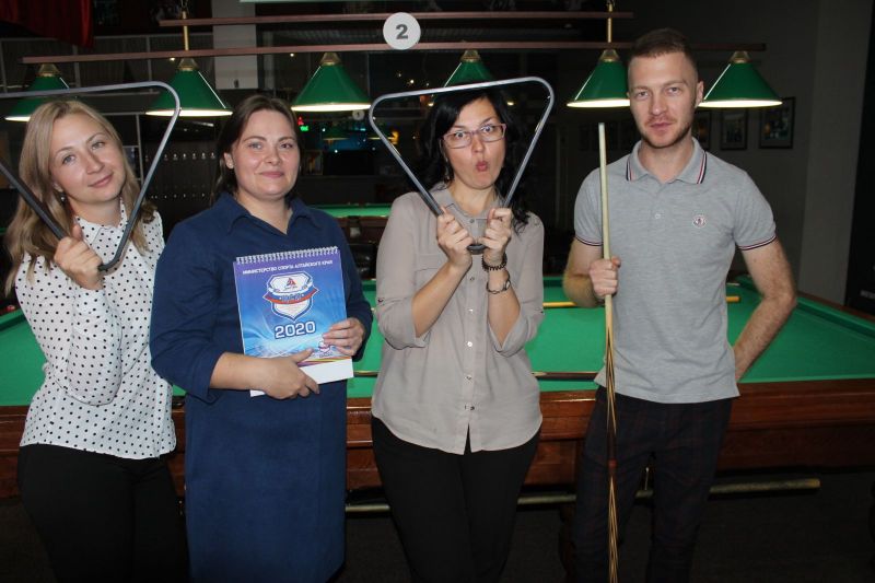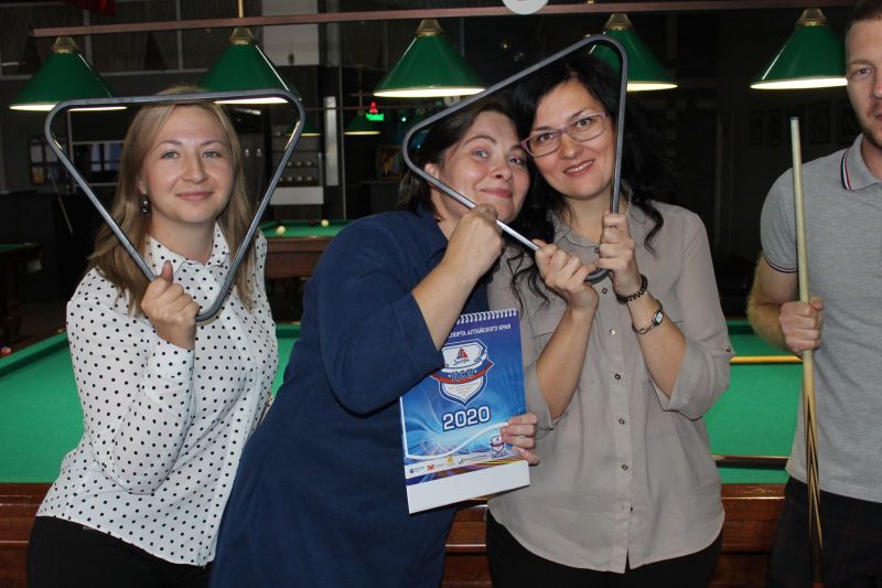 В турнире по бильярдному спорту «Свободная пирамида» приняли участие 17 представителей СМИ из «Алтайского спорта», «Алтайской правды», сетевого издания «ТОЛК», телеканала «Катунь 24», Детской студии телевидения и пресс-служб Правительства региона.