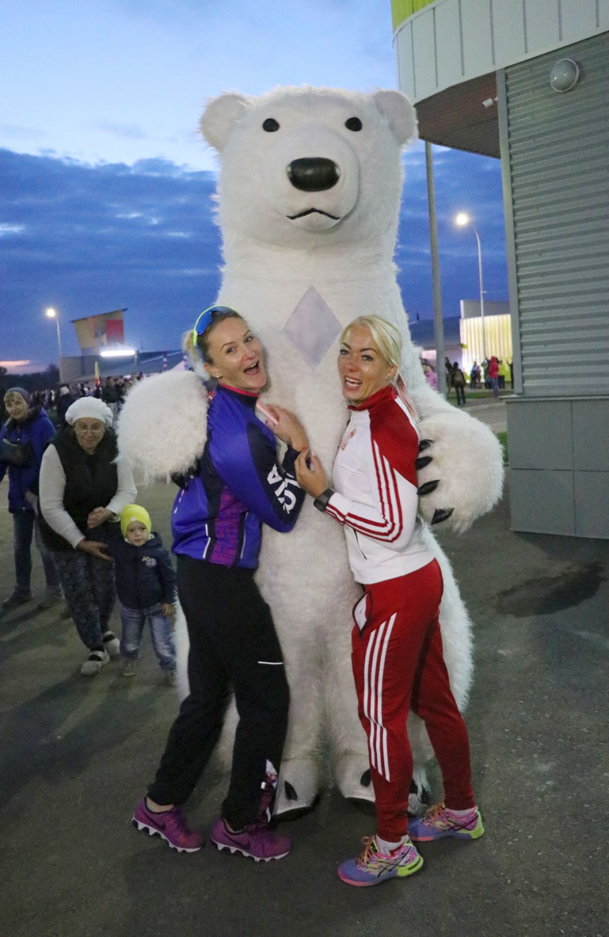 Во время церемонии закрытия Губерниев на сцене встал на колени перед Биргит Фишер. А потом уже за сценой вручил подаренного ему мягкого белого игрушечного медведя девчушке лет семи. Фишер со своим мишкой через несколько минут поступила точно так же.