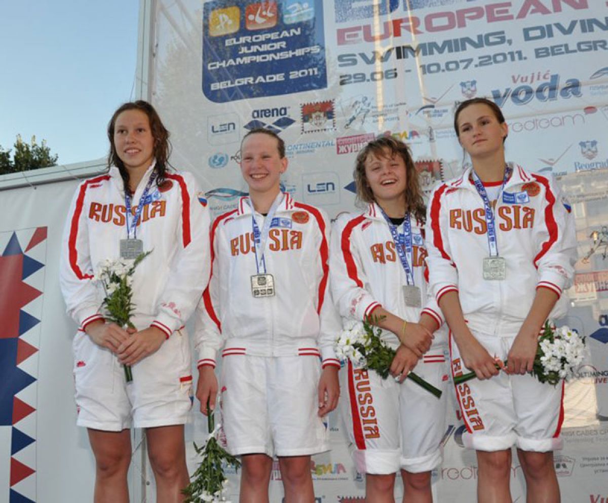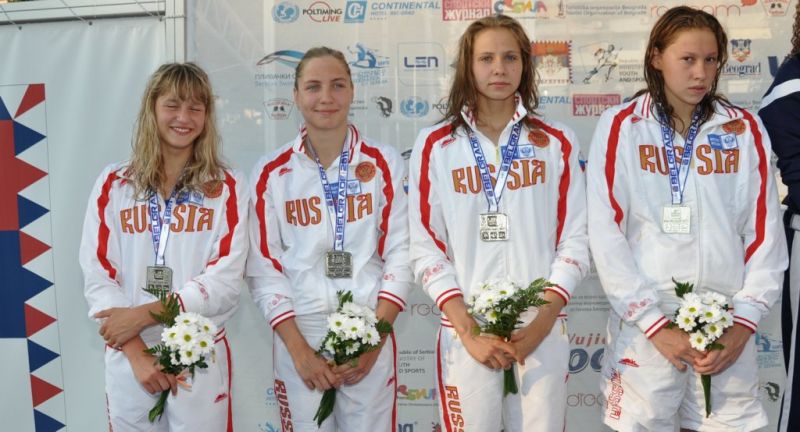 2. Россия (Юлия Ларина, Ирина Новикова, Дарья Цветкова, Ксения Юськова) - 4:10,38