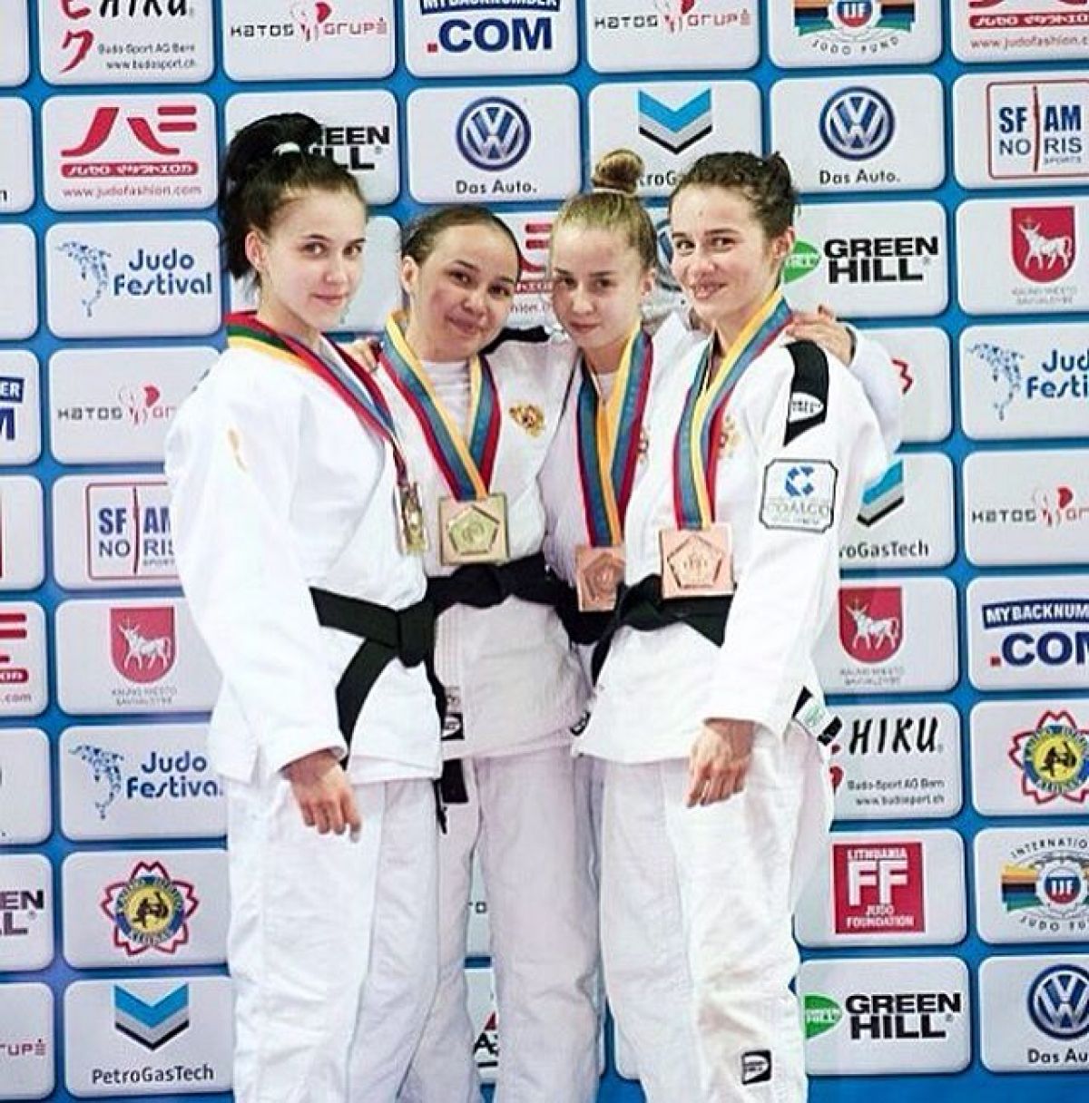 На фото: на пьедестале почёта в Каунасе; Виктория Васильченко крайняя слева.