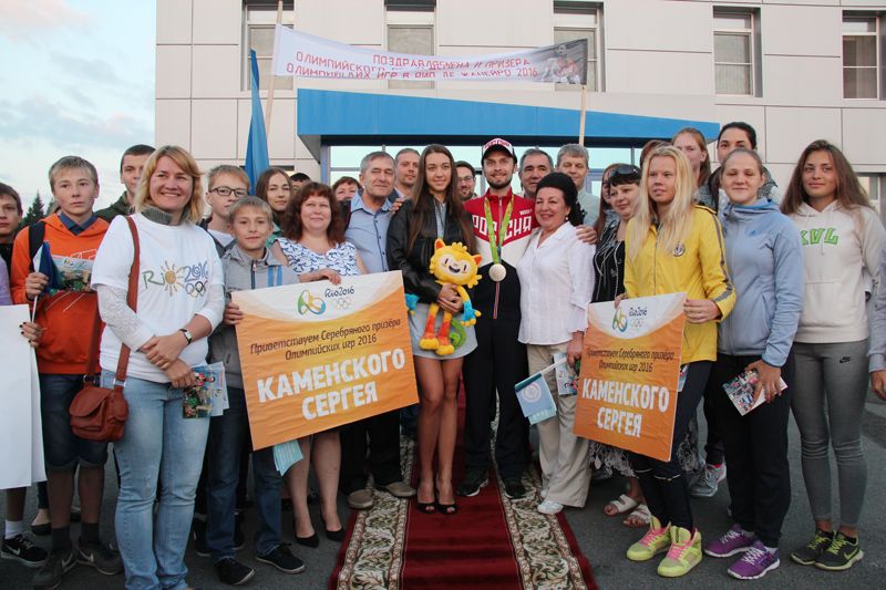 В аэропорт Барнаула серебряный призер Олимпийских игр прилетел 18 августа утренним рейсом из «Шереметьево». Здесь Сергея в торжественной обстановке встречали родители, супруга, друзья, журналисты, болельщики, представители региональных властей. После этого Каменский отправился в управление спорта и молодежной политики Алтайского края, где дал большую пресс-конференцию.