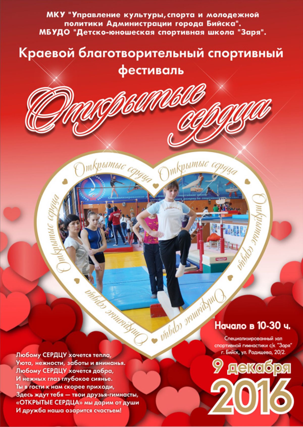 9 декабря. Бийск. Зал спортивной гимнастики с/к «Заря». Краевой благотворительный фестиваль «Открытые сердца».