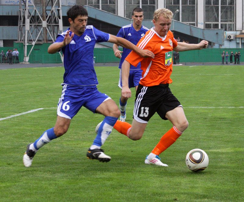 На последней минуте первого тайма «Динамо» организует контратаку. На ударную позицию выходит капитан Андрей Марков и от души прикладывается - выше ворот. Тут же хозяева зарабатывают очередной штрафной. После его розыгрыша мяч путешествует вблизи ворот барнаульцев и отскакивает к игроку «Металлурга». Тот сходу бьёт, но перед мячом словно из-под земли вырастает Дадаш Казиханов. Игровой снаряд попадает защитнику в грудь. Некоторые футболисты «Металлурга» покидают поле и уходят отдыхать в раздевалку, а Казиханову врачи ещё продолжают оказывать помощь. Смелость города берёт.