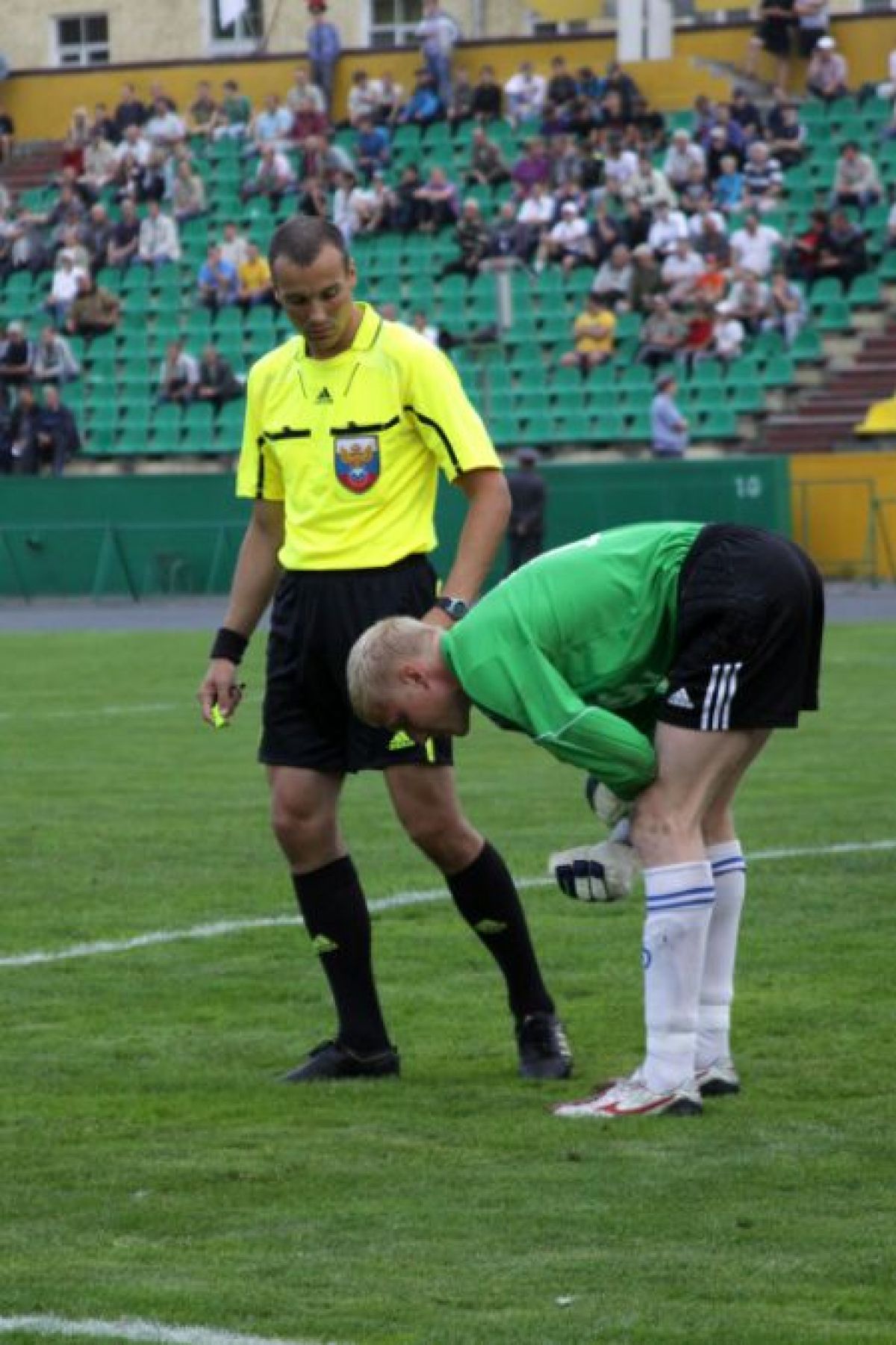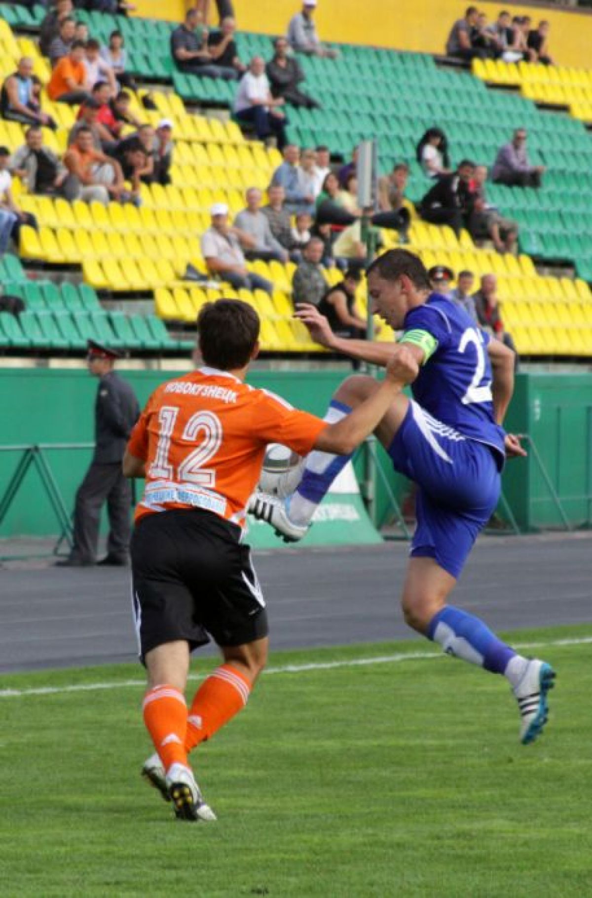 С коллегой мы быстренько устроились в секторе и увлеклись игрой. Посмотреть было на что. Динамовцы демонстрировали запредельную самоотдачу - бросались в подкаты, принимали, как в хоккее, удары на себя. Живота своего не щадили. Картинка была как в трансляциях чемпионата Англии, только «живая». А тут ещё динамовские фанаты включились в игру: слаженно и громко начали петь и скандировать слова поддержки. Эффект был потрясающим: новокузнецкие болельщики смотрели не на мяч, а на оголившихся по пояс молодчиков из Барнаула! Фанатская группировка «Металлурга», расположившаяся на противоположной трибуне и оказавшаяся раза в два меньше динамовской, безмолвствовала практически весь матч - расслышать её удалось лишь в начале второго тайма, и то ненадолго.