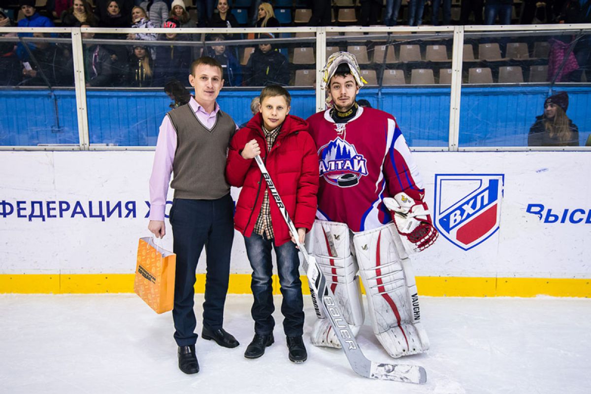 После повторной встречи между «Алтаем» и самарским ЦСК ВВС под аплодисменты трибун Никиту Нефёдова пригласили на лёд. Тут же рядом с ним оказался голкипер барнаульской команды Александр Власов. Именно он вручил пареньку настоящую вратарскую клюшку с автографами вратарей «Алтая».