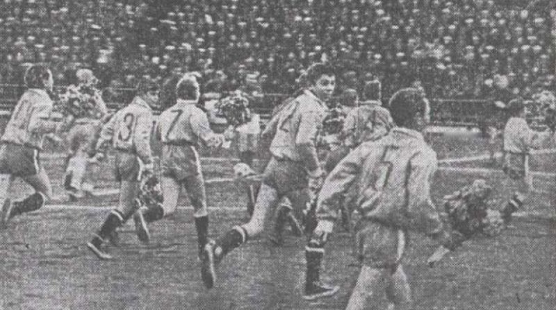 И вот настал тот самый день - 18 октября, вторник. Спасибо официальному протоколу, который позволил узнать даже температуру воздуха: два градуса тепла. Игру назначили на 16:00, и трибуны, понятное дело, были заполнены, несмотря на то, что игру даже показывали по телевидению. Здесь ещё к слову придётся информация, что цена билета совсем не кусалась: 1 рубль. Даже пообедать в столовой в то время стоило дороже.