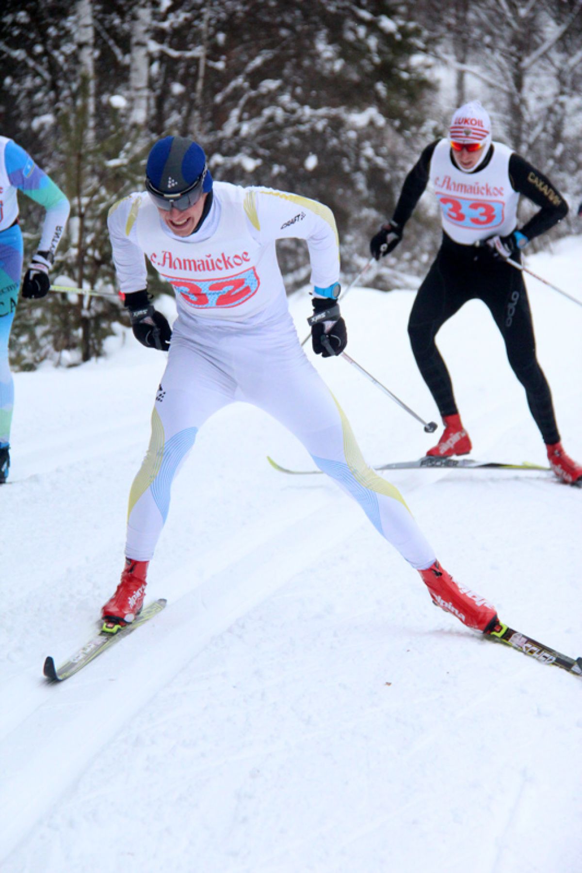Если на равнине с раннего утра бушевала метель, и многие участники и гости марафона (часть из них приехала из соседних регионов) всерьёз опасались, что погода испортит праздник, то на самом месте старта за ночь не выпало ни миллиметра снега. С утра ещё было слегка морозно, но уже через час с момента старта стало вполне комфортно. Снежок пошёл только после финиша первых спортсменов, уходивших на 50 км. Призы на последней 500-метровке марафонской дистанции разыграли братья Гуляевы и гонщик из Якутии - Александр Филиппов. Тренер и отец алтайских лыжников Юрий Гуляев был на сто процентов уверен, что если дело дойдёт до финишных разборок, то победу одержит старший из сыновей - Иван, известный как мастер спринтерских гонок. Но как рассказал «АС» сам Иван, у него ещё километров за восемь до финиша начало сводить мышцы пресса, а на последних метрах боль стала просто нестерпимой. В итоге выиграл Александр, промчавший дистанцию за 2 часа 17 минут и 54 секунды. Второе место занял отставший на секунду Александр Филиппов.