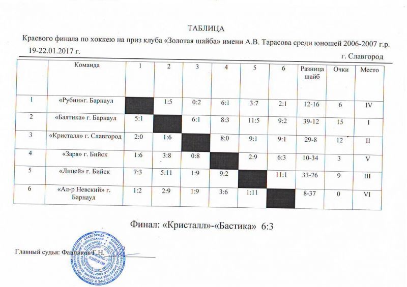 Славгородский «Кристалл» - победитель краевого этапа всероссийского турнира на призы клуба «Золотая шайба» среди юношей 2006−2007 годов рождения.