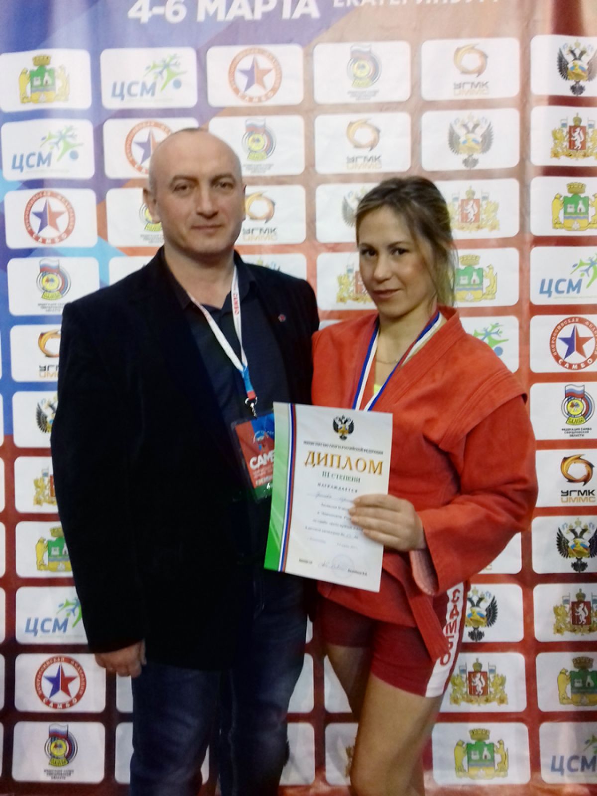 На фото: Ирина Громова и её тренер Олег Зайцев на чемпионате России по самбо в Екатеринбурге.