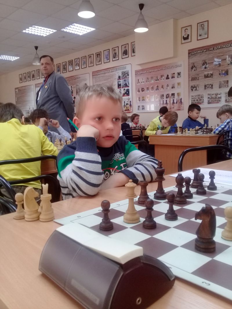 - На таких турнирах в среднем партия длится чуть больше часа. Несмотря на возраст, дети очень ответственно подходят к игре. Обязательно записывают все ходы, обдумывают каждый шаг на доске. Они осознают важность этого турнира, очень стараются. И нам радостно, что из таких вот малышей уже через пять-шесть лет вырастают серьёзные спортсмены-шахматисты. Можно даже посмотреть статистику - почти все победители и фавориты детских турниров впоследствии показывают хорошие результаты в юношеских соревнованиях. Но дети есть дети, не обходится и без смешных моментов. В этот раз, например, один малыш позвал судью и заявил, что не будет играть с этим мальчиком, потому что тот грызёт ручку и этим его раздражает. Иногда девчонки привозят с собой любимых кукол, да ещё и не одну. И, конечно, малыши очень эмоционально переживают проигрыш - слёзы текут рекой. Что интересно, мальчишки плачут сильнее и громче девчонок.В тренировочном классе Алтайского краевого шахматного клуба весёлый шум и гам. Очередной тур начнётся через полчаса - и дети вовсю резвятся. Но кое-кто уже настраивается на партию. Вот одна юная участница ходит по коридору, нарезая круги, и что-то нашёптывает. Девочка нам поясняет: