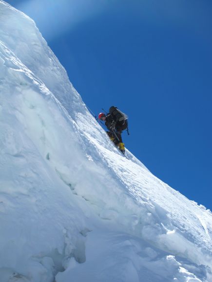 - В этот раз мы шли малой группой, без поддержки вертолёта, - говорит Алексей Усатых. — Надежда была только на товарищей и свои силы. Выбрали маршрут Абалакова: летом он лавиноопасен, а раньше считался классикой. Маршрут закрыт стеной от ветра, поэтому зимой логичнее идти по нему.