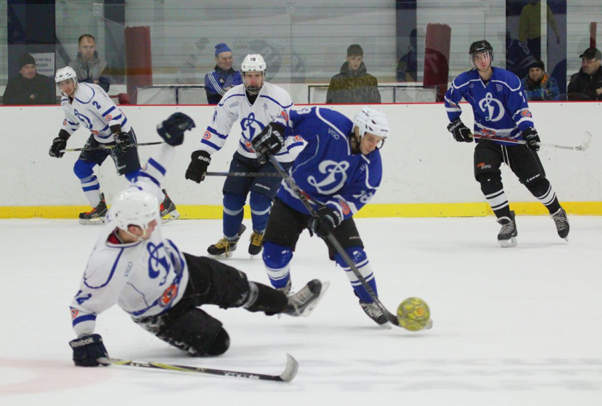 Два динамовских коллектива - футбольный и хоккейный - 1 апреля встретились на льду