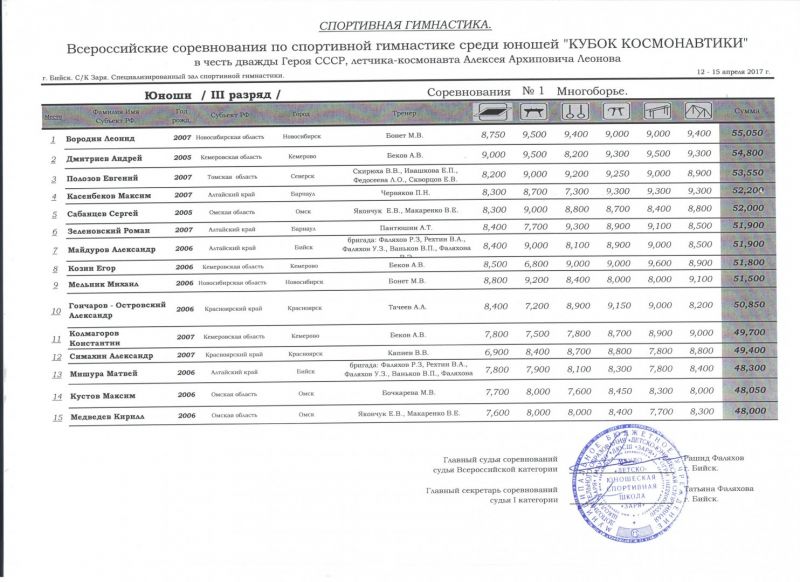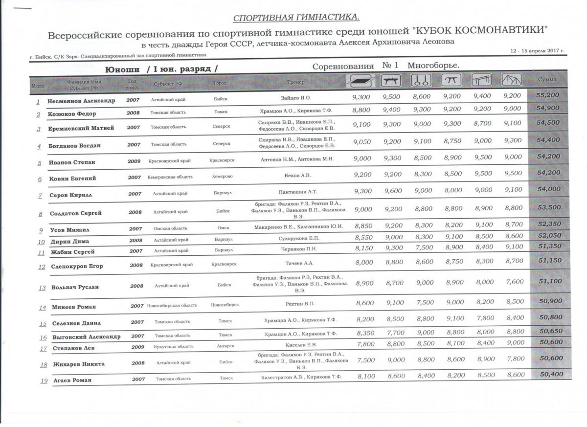 В соревнованиях по многоборью Артём Хохлов стал бронзовым призёром среди спортсменов первого разряда, по программе первого юношеского разряда первенствовал Александр Несмеянов, а среди спортсменов второго юношеского разряда серебро завоевал Матвей Фирсанов. Все спортсмены из Бийска.