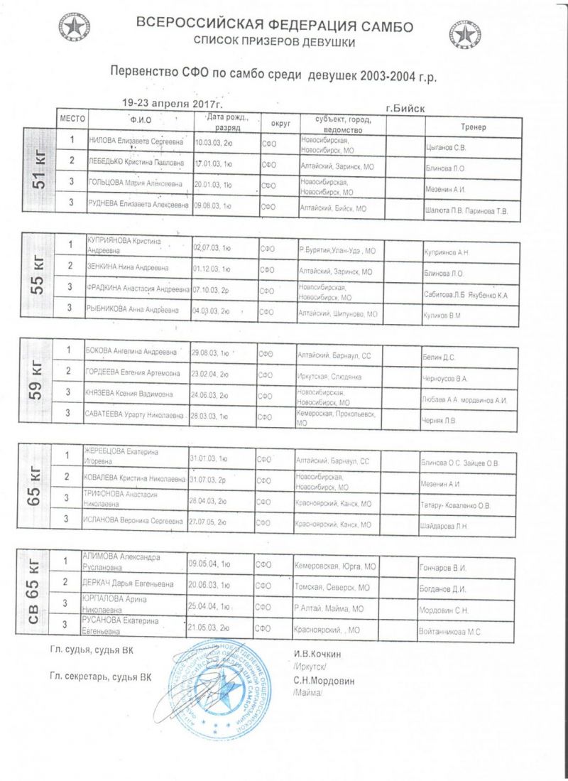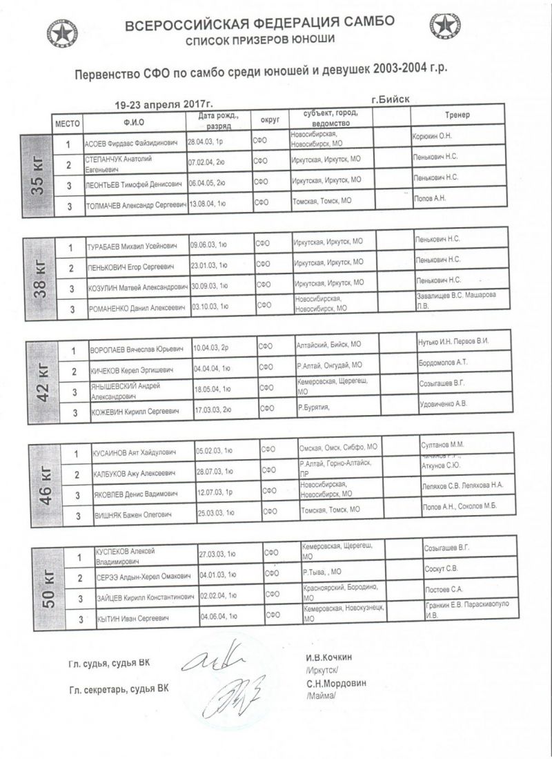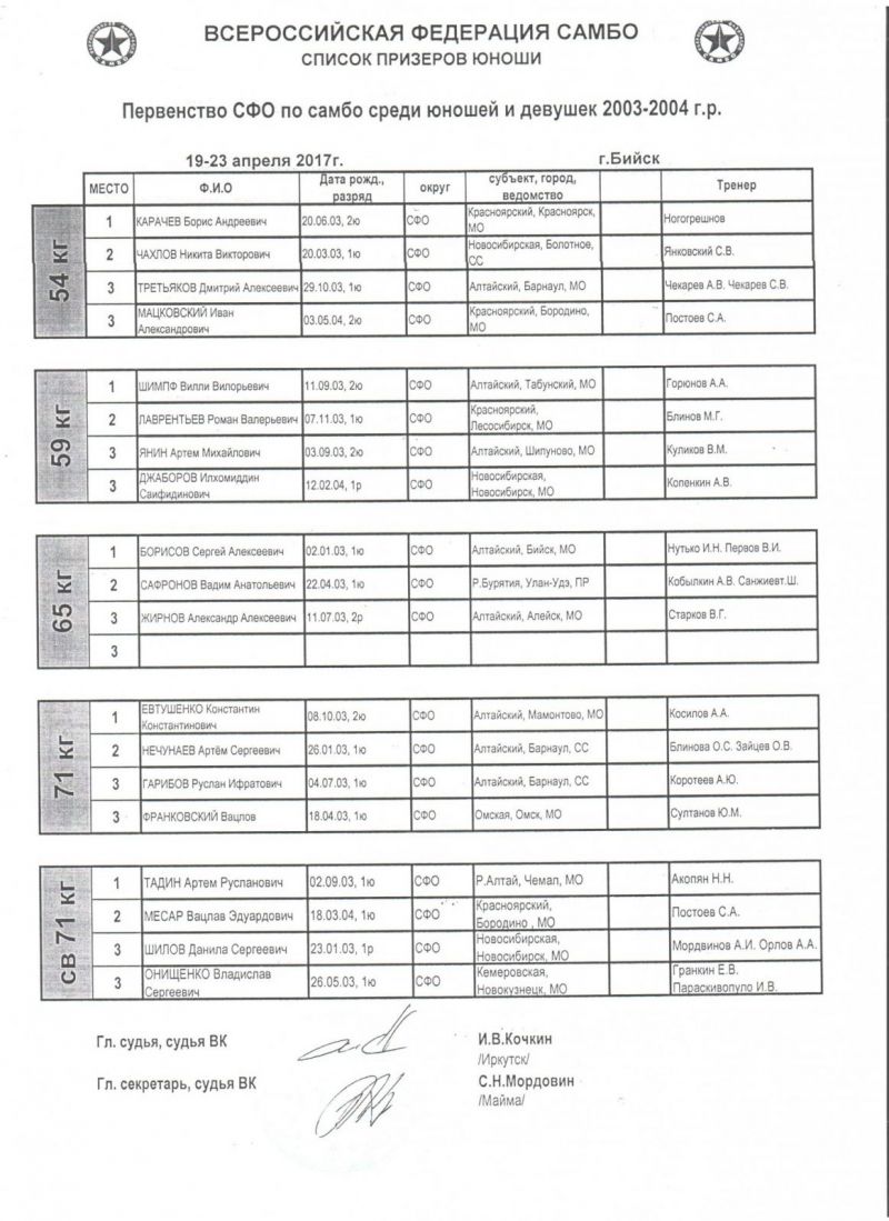 В турнире приняли участие самбисты 2003−2004 годов рождения: 308 юношей и 93 девушки. На счету наших борцов 23 медали: 8 золотых, 7 серебряных и 8 бронзовых. Алтайские спортсмены стали первыми в командном зачёте и среди юношей, и среди девушек.