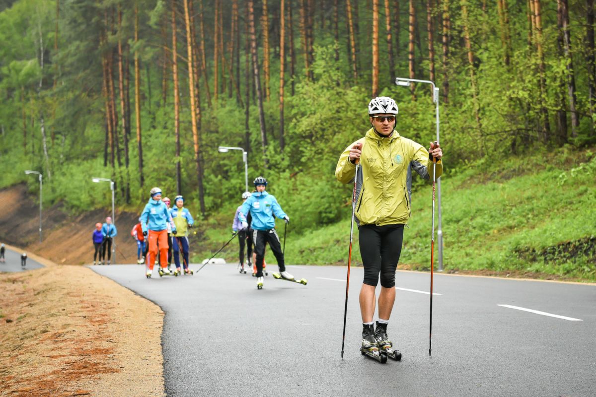 Новую лыжероллерную трассу в Белокурихе открыли лучшие биатлонисты России и Казахстана