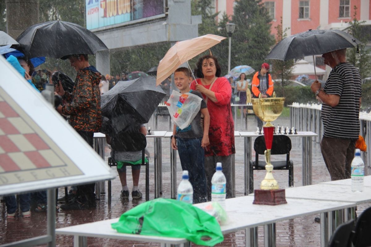 За 15 минут до начала мероприятия на нулевой километр Барнаула, где проходил сеанс, обрушился ливень и его начало пришлось немного сдвинуть. Ждать пока дождь совсем сойдёт на нет не стали, детям (а их на сеансе было большинство) особенно хотелось сразиться с знаменитостями. Главной звездой нынешнего фестиваля является, конечно, вице-чемпион мира Гата Камский. Талантливейший шахматист, он в 13 лет стал чемпионом СССР по шахматам среди юношей, а в 17 лет победил на взрослом чемпионате США. С тех пор Гата - неоднократный чемпион этой страны. В 1996 году Камский в финальном матче претендентов на мировую корону по версии ФИДЕ играл с Анатолием Карповым. После чего на восемь лет оставлял спорт, желая отойти от дрязг, раздиравших мировые шахматы, и получить достойное образование. Сейчас он вновь в обойме лучших гроссмейстеров мира.