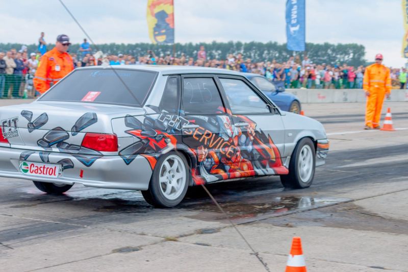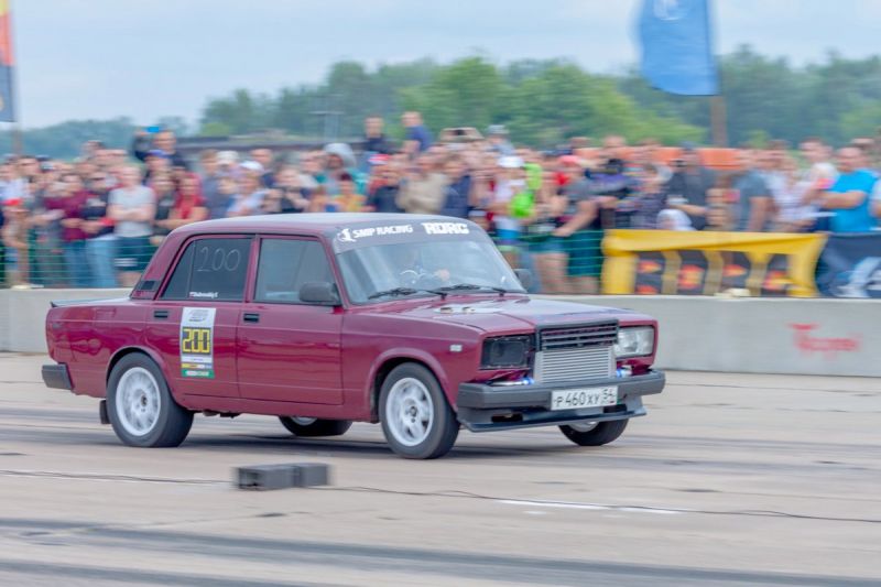 Рев моторов, клубы дыма… До одинокой сосны, стоящей аккурат на финише, на полном газе надо проскочить по бетонной полосе 402 метра - кто вперёд. Не искушённому в автоспорте зрителю, зрелище напомнает забеги спринтеров: засиделся на старте - проиграл. Решающую роль в таких состязаниях играют быстрота реакции гонщика на старте и техническая подготовленность автомобиля.Некоторые машины после заезда не могут вернуться самостоятельно - приходится их тянуть с трассы на буксире. Дрэг-рэйсинг с его максимальными нагрузками - стресс не только для гонщика, но и его автомобиля. Не все выдерживают. Зато какой восторг охватывает зрителей, когда ведущий объявляет, что представитель российского автопрома - жигулёнок - обогнал японца, развив на финише скорость за 200 км в час! Внешний вид авто - как в знаменитом романе Ремарка «Три товарища» - здесь мало значит: главное, какой он внутри.