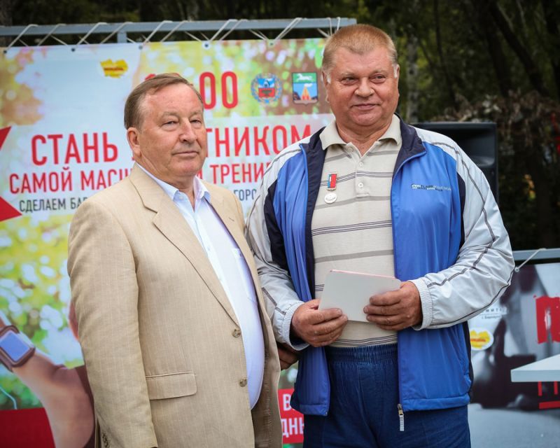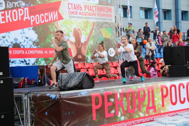 Центральным событием праздника стала «Масштабная тренировка». Она длилась около часа. В конце мероприятия представитель Книги рекордов России зафиксировал рекорд и объявил количество участников - 3012 человек. Организаторам мероприятия был передан соответствующий сертификат.Кстати, рекорд установленный в «Парке спорта», был не единственным в этот день в Барнауле. Ещё один состоялся на площади Советов, где прошёл самый массовый танцевальный флешмоб под композицию, исполняемую автором вживую. Как отметил главный редактор Книги рекордов России Станислав Коненко, два рекорда России в один день и в одном городе - тоже своеобразный рекорд.
