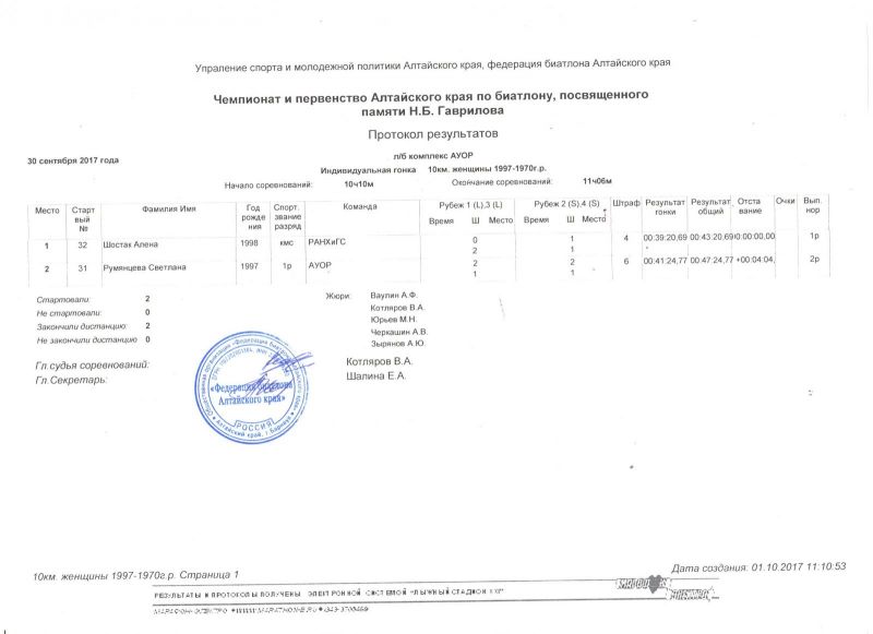 Соревнования проходили с 30 сентября по 1 октября на лыжно-биатлонном комплексе Алтайского училища олимпийского резерва. В них приняло участие более 60 спортсменов - от 15-летних юниоров до взрослых.
