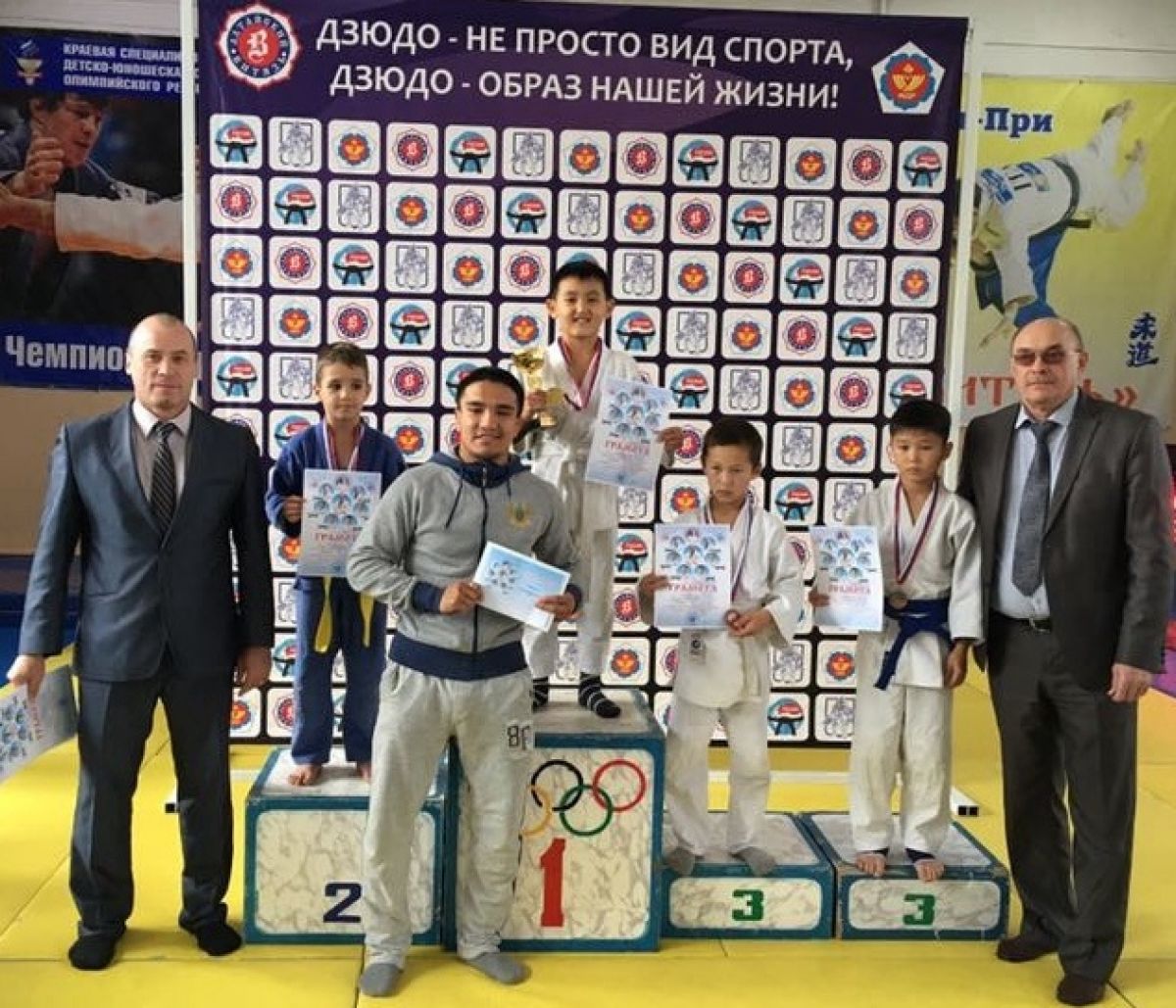 Табло Победители среди младших юношей (2007−2009 г. р.) 26 кг - Турлыбаев Дархан (Казахстан) 29 кг - Медетулы Фирдауз (Казахстан) 32 кг - Матеркин Роман («Алтайский витязь») 35 кг - Шингаев Темирлан (Казахстан) 38 кг - Артемьев Вадим («Алтайский витязь») 42 кг - Петин Давид («Алтайский витязь») 46 кг - Парамонов Валентин («Алтайский витязь») 50 кг - Савиных Тимур («Скиф» Барнаул) Свыше 50 кг - Тепляков Олег («Алтайский витязь») Победители среди средних юношей (2004−2006 г. р.) 38 кг - Сариков Мади (Казахстан) 42 кг - Должиков Максим (г. Рубцовск) 46 кг - Сидоренко Саша («Алтайский витязь») 50 кг - Медведев Глеб (Республика Алтай) 55 кг - Ломаев Максим («Ирбис» Барнаул) 60 кг - Власов Илья («Алтайский витязь») 73 кг - Артемьев Кирилл (Кемеровская область) Свыше 73 кг - Дитятьев Виталий («Скиф» Барнаул) Победители среди старших юношей (2001−2003 г. р.) 46 кг - Гоптарь Семён (Новосибирская область) 50 кг - Селифонов Евгений (АУОР Барнаул) 55 кг - Устинов Егор («Алтайский витязь») 60 кг - Алексеев Алексей («Алтайский витязь») 66 кг - Жумабеков Жаксылык (Казахстан) 73 кг - Вахмянин Александр (Новосибирская область) 81 кг - Талготулы Диос (Казахстан) 90 кг - Артёмов Егор (Новосибирская область)