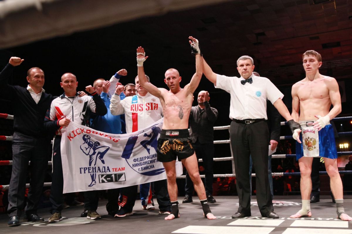 В главном бое вечера, в категории до 57 килограммов, на ринге сошлись воспитанник бийского спортивного клуба «Гренада» Андрей Пилюгин и хабаровский кикбоксер Андрей Савельев. Бой проходил за звание чемпиона страны в разделе К-1. Этот раздел является самым жестким в кикбоксинге: помимо ударов руками и ногами, здесь разрешены удары коленями.
