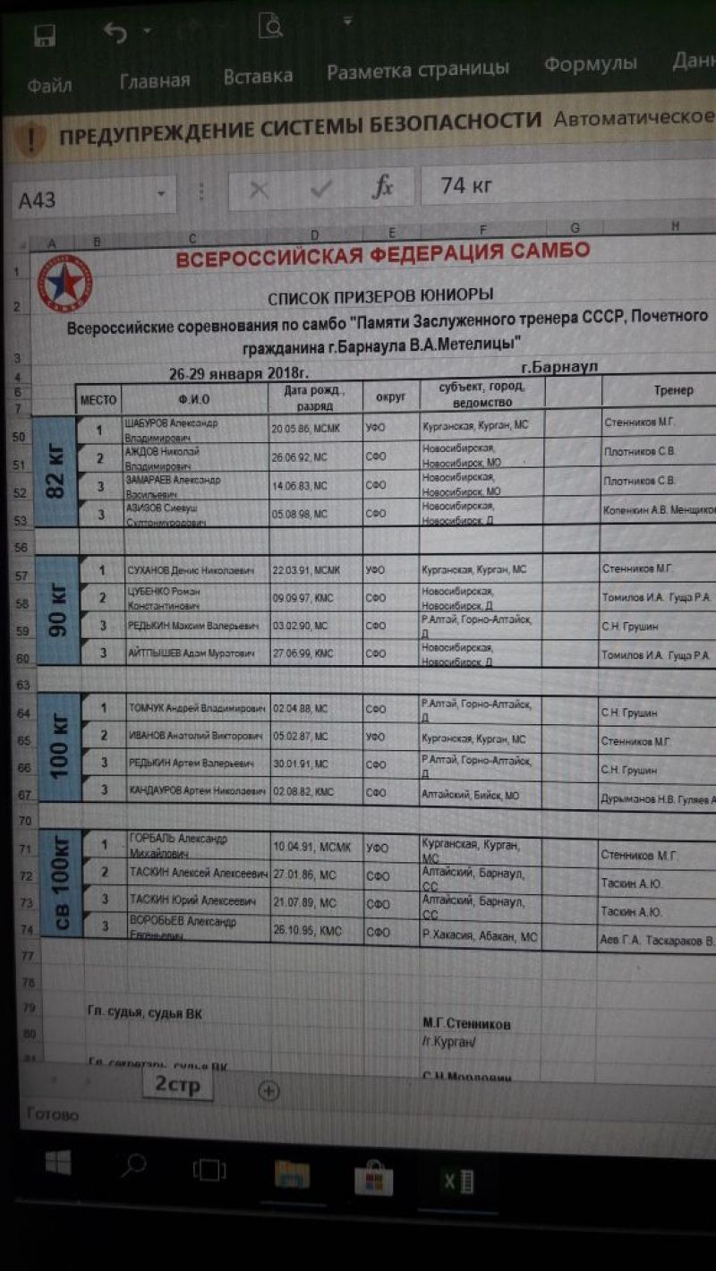В Барнауле завершились Всероссийские соревнования памяти заслуженного тренера СССР и России Валерия Метелицы