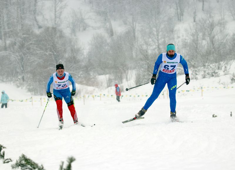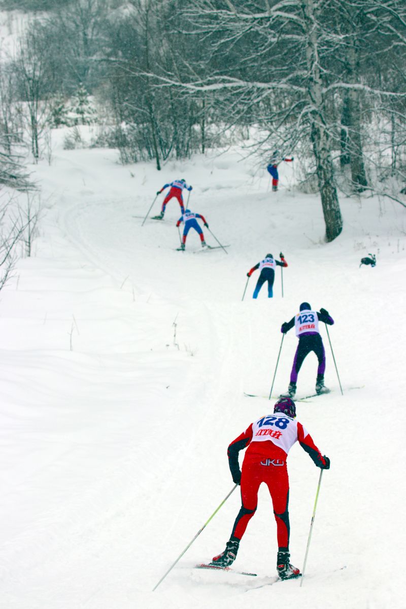 Во время соревнований в Алтайском выпало много снега. За всю зиму столько не было, а тут - за день! Погодная аномалия. В подъём заползал тяжело, но дотопал до финиша. Когда лыжи вязнут в снегу, нужно либо чаще перебирать ногами, либо лучше раскатываться - тут кому что ближе. Я раскатывал, шёл не спеша, терпел.