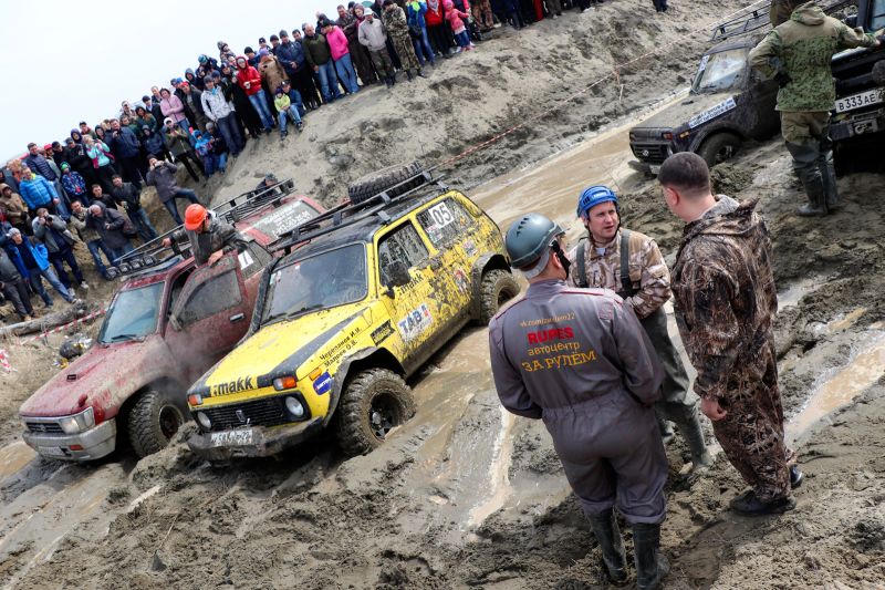 - «Апрельский кураж» проводится в различных форматах уже 11-й год. По итогам соревнований мы проведём подробный разбор ошибок. В частности в классе «Стандарт» сегодня у некоторых водителей не оказалось необходимой техники для вызволения из грязи.