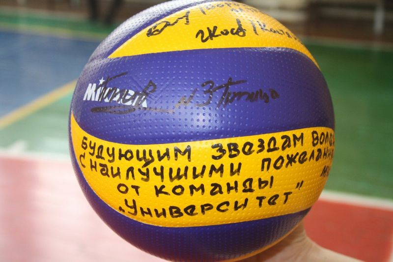 По завершению тренировки ребята бурными аплодисментами поблагодарили опытных волейболистов и вручили сувенирную продукцию спортивной школы. В ответ игроки команды «Университет» подарили ребятам календари и волейбольный мяч, на котором оставили свои пожелания и автографы, сообщает сайт СШОР «Заря Алтая».