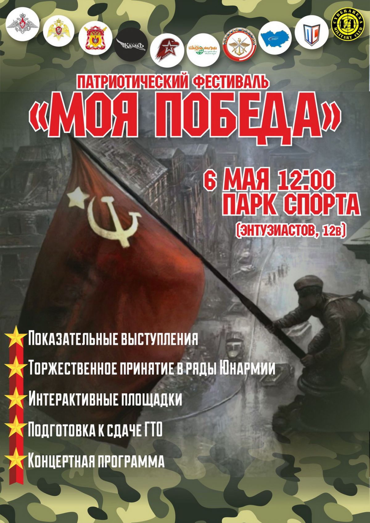 Масштабный военно-спортивный праздник «Моя Победа» организуют 6 мая в барнаульском Парке спорта региональное отделение всероссийского военно-патриотического общественного движения «Юнармия», центр социальной помощи и благотворительной поддержки «За добрые дела» и молодёжный парламент Алтайского края.