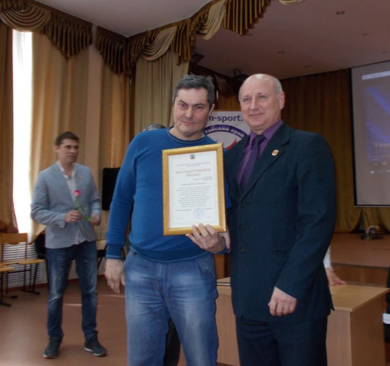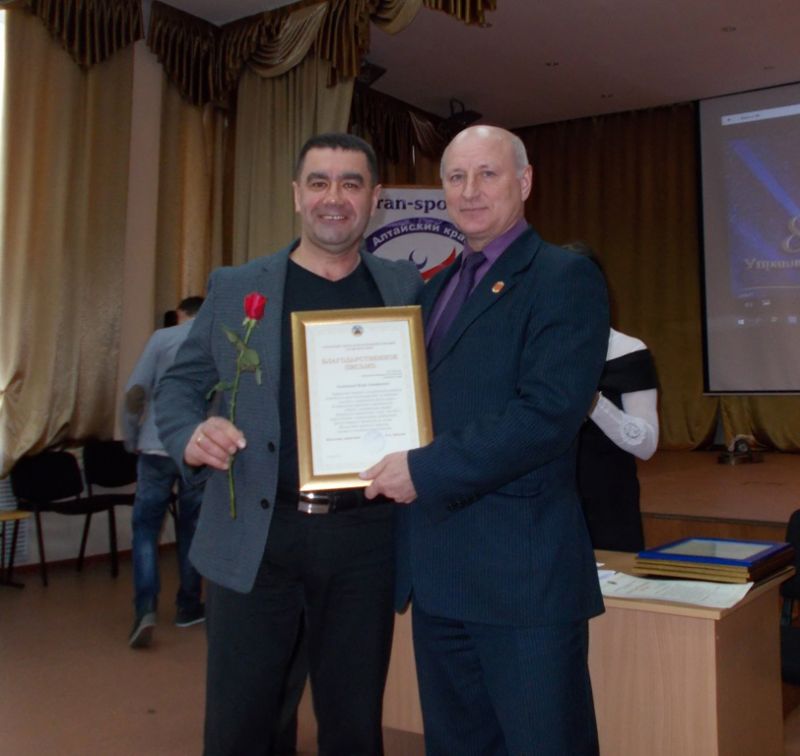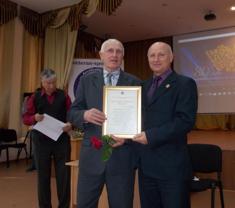 Начальник отдела физвоспитания и спорта управления спорта и молодёжной политики Алтайского края Пётр Кобзаренко поблагодарил чемпионов, лидеров спорта за их преданность спорту, спортивное долголетие.