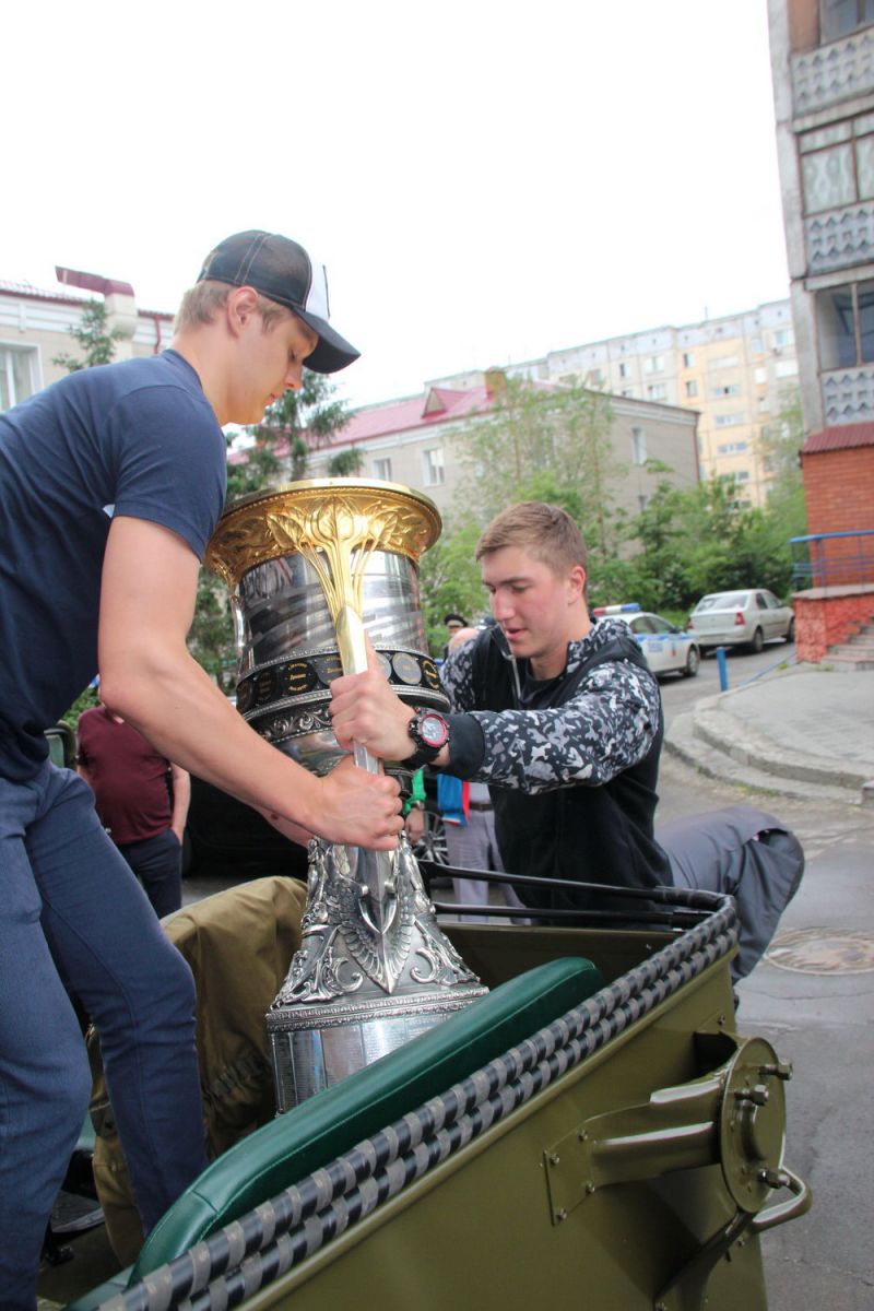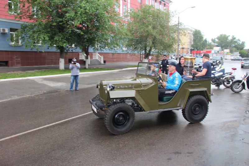 После небольшой передышки защитник казанского «Ак Барса», воспитанник бийского клуба «Лицей» Никита Лямкин провёз высшую награду российского хоккея в открытой машине через весь город от гостиницы «Русь» до «Карандин-Арены». Причём, это был не какой-нибудь современный кабриолет, а ретро-автомобиль - ГАЗ 1943 года выпуска, отреставрированный барнаульскими умельцами.