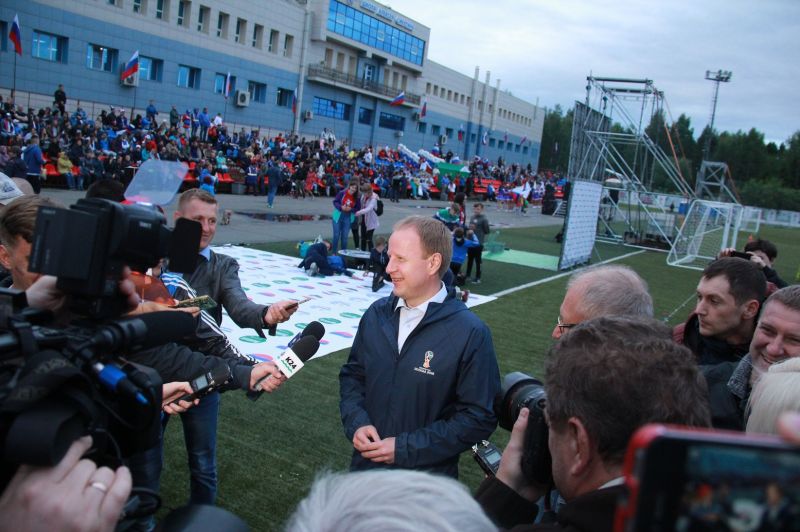 Матч открытия в «Лужниках» между Россией и Саудовской Аравии начинался в 22:00 по барнаульскому времени. Фан-зона в барнаульском Парке спорта открыла свои двери для болельщиков на три часа раньше. Народ неспешно подтягивался к двум экранам, установленных перед трибунами, и примерно за полчаса до начала трансляции посадочные места стадиона спортшколы Алексея Смертина были заполнены. Кто с трещотками, а кто с нарисованными триколорами на лицах с бодрыми криками «Россия, Россия!» проходил через турникеты, попутно позируя фотокорам, оккупировавшим прилегающую ко входу в фан-зону территорию. Место базирования журналистов было неслучайным, ведь примерно за полчаса до церемонии открытия ЧМ поболеть вместе с барнаульцами за российскую сборную прибыл врио губернатора Алтайского края Виктор Томенко.