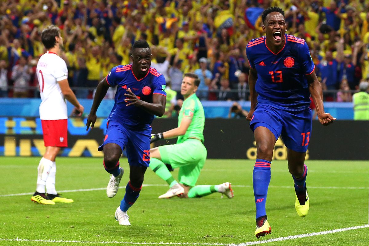 Первый мяч в ворота Войцеха Щесны влетел на 40-й минуте. Высоченный защитник Йерри Мина сыграл на опережение и головой замкнул подачу Хамеса Родригеса.