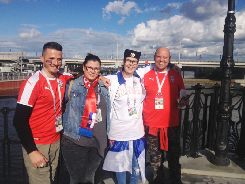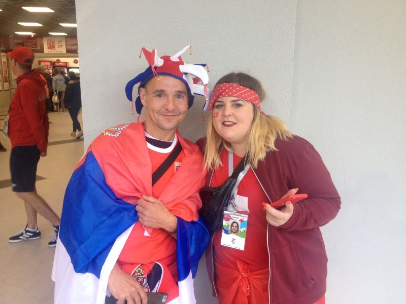 В день матча в цвета Сербии раскрасился и весь Калининград. Сербы продолжали своё веселье, скандируя «Србы и Русы братья заувек». На центральной площади города болельщики растянули русско-сербский флаг с надписью «Одни цвета - одна вера». Российские болельщики шли болеть за сборную Сербии. Чем ближе время матча, тем больше становилось и швейцарцев. Но никаких конфликтов между болельщиками не было. Все были доброжелательны, активно фотографировались друг с другом.