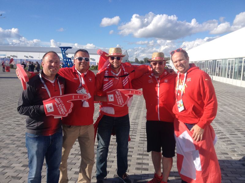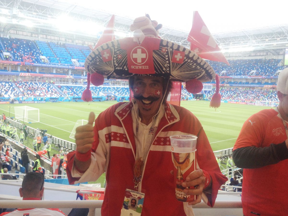 80% болельщиков на трибунах поддерживали Сербию, но швейцарцы были организованнее. Они выкупили отдельный сектор и все 90 минут распевали песни в поддержку своей команды. После победного гола Джердан Шакири побежал праздновать гол к этой трибуне.