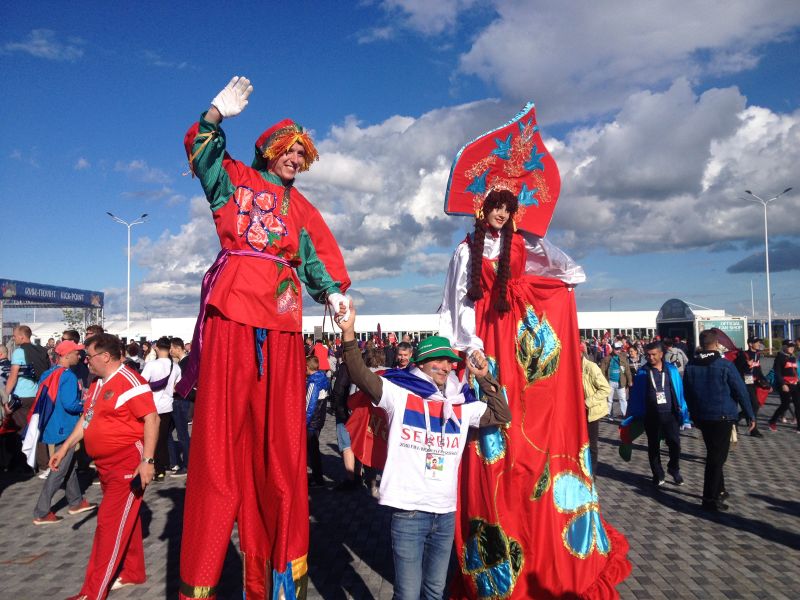 В атмосферу футбольного праздника начинаешь погружаться во время пересадки с одного рейса на другой в аэропорту «Домодедово». Сейчас он напоминает собой настоящий Вавилон. Вот у терминала стоят перуанцы, опаздывающие на рейс до Екатеринбурга. Большими толпами в футболках «Месси» ходят позитивные аргентинцы: тогда они не знали, как закончится матч их сборной против Хорватии. Но наибольшее впечатление на меня произвели сербы. Нам предстояло лететь в одном самолёте в Калининград на матч их сборной против Швейцарии. В итоге практически весь самолёт был сербским. Весь полёт они распевали национальные песни про Кассиопею или Югославию, скандировали кричалки и посмеивались над швейцарцами, которые летели не в таком большом количестве.