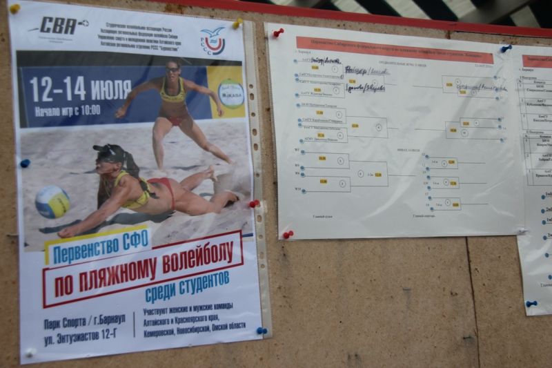 Барнаульский центр пляжных видов спорта 13−14 июля во второй раз принимал студенческие соревнования Сибирского федерального округа по пляжному волейболу. В этом году в первенстве СФО приняли участие 14 команд из трёх регионов - Алтайский край представляли пары из педагогического, классического, медицинского университетов, в также курсанты БЮИ МВД России, Кемеровскую область - команды КемГУ, а Красноярский край - СибГУ.