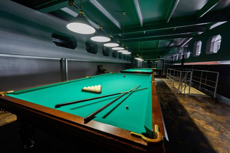 На втором этаже клуба - бильярдный зал с тремя столами, а также небольшая мягкая зона с уютными креслами и диванчиками.
