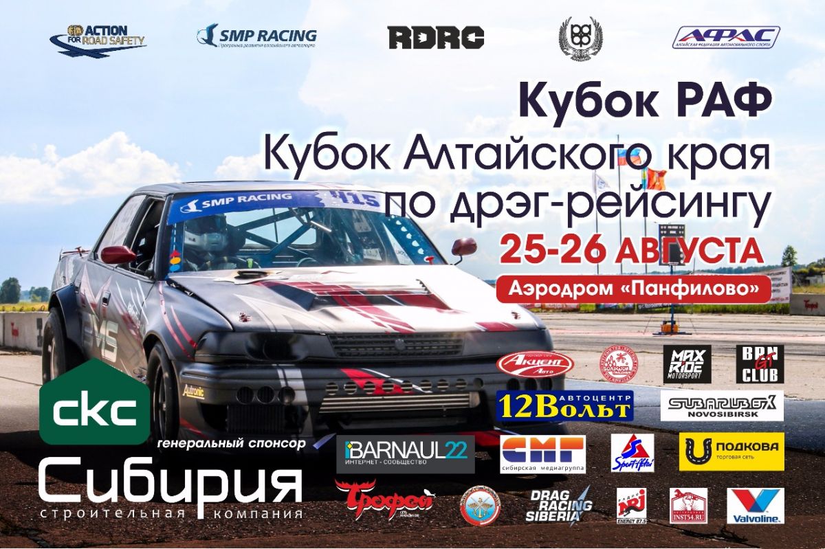 Напомним, 25−26 августа в нашем регионе состоятся соревнования на Кубок Российской автомобильной федерации и Кубок Алтайского края по дрэг-рейсингу. Место проведения - аэродром Панфилово в селе Новороманово Калманского района.