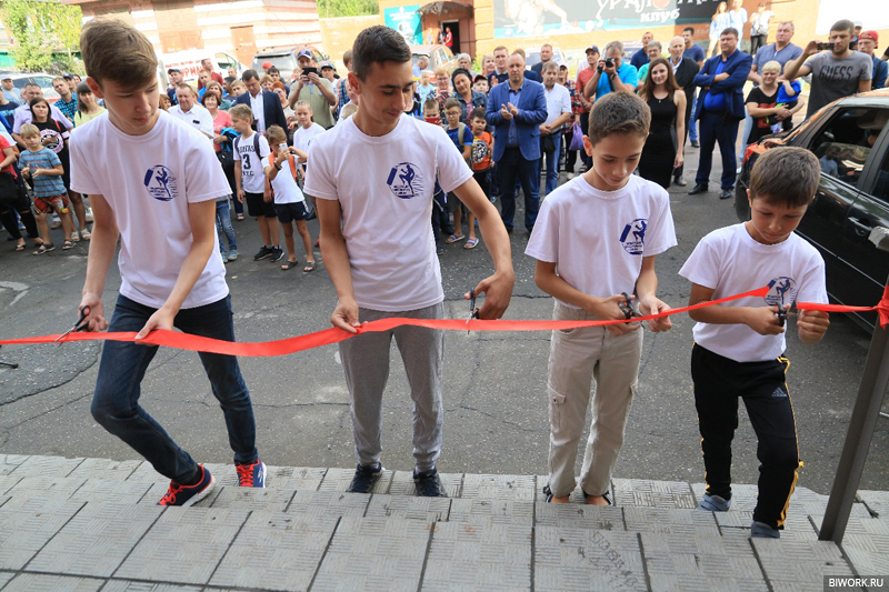 Право перерезать красную ленточку предоставили юным спортсменам. В этом зале ребят предстоит упорно тренироваться, чтобы стать новыми чемпионами.