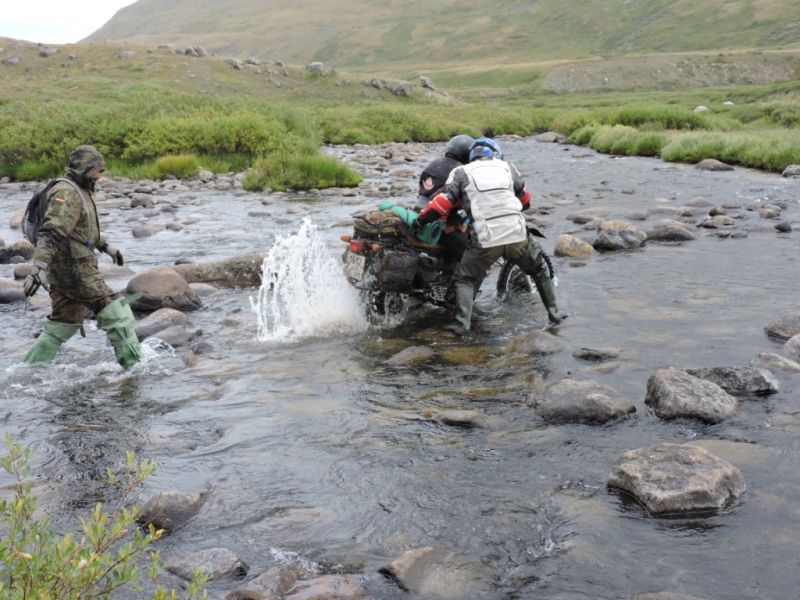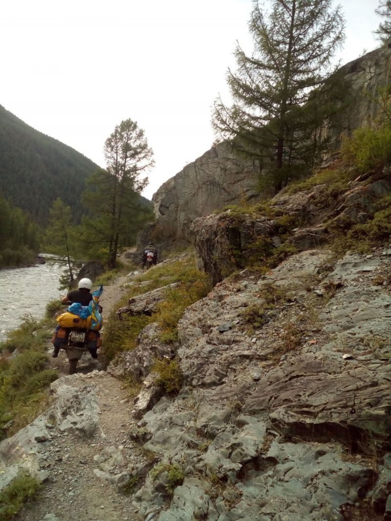 Ещё одним этапом путешествия стало первопрохождение по звериным и конным тропам вдоль реки Башкаус, расположенной в Республике Алтай. Еще никто и никогда не проходил этот участок на мотоциклах!