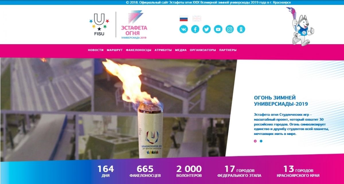 Сегодня, 5 сентября, был запущен официальный сайт Эстафеты огня Зимней универсиады-2019 - relay.krsk2019.ru.