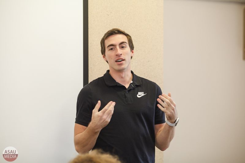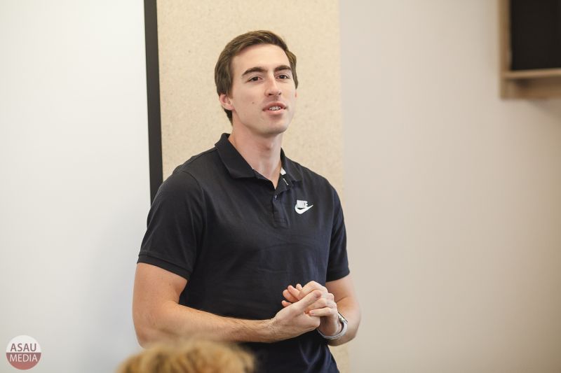 Встреча прошла 18 октября в рамках Всероссийской акции «Я выбираю спорт». На ней присутствовало более 50 человек - спортсмены вуза, волонтёры, стройотрядовцы. По привычному сценарию таких мероприятий сначала Сергей рассказал о себе, о том как он пришел в спорт, как совмещал учебу с занятиями легкой атлетикой на самом высоком уровне. Затем ответил на вопросы.