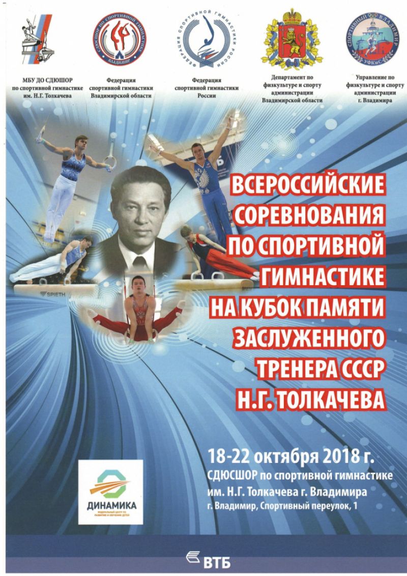 Во Владимире 19−22 октября состоялся турнир по спортивной гимнастике памяти Николая Толкачева, заслуженного тренера СССР, тренера легендарного гимнаста Николая Андрианова. В соревнованиях участвовали около 350 спортсменов из 40 городов России, а также представители Донецка и Луганска.