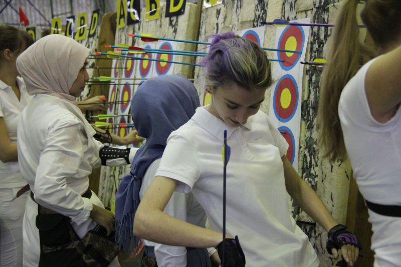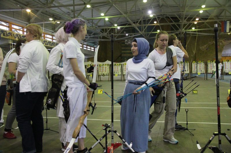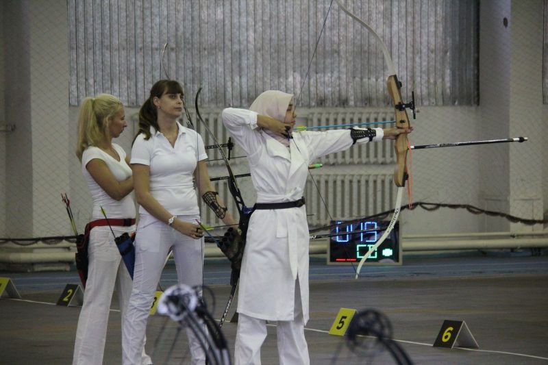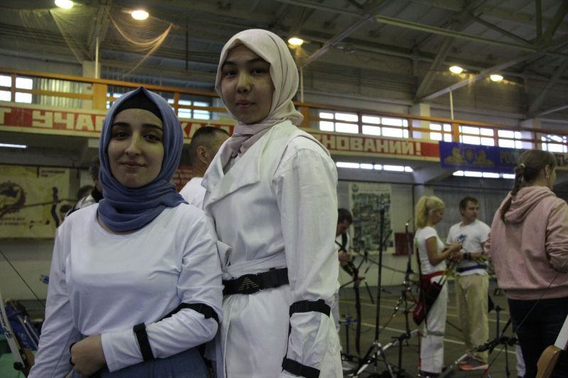Поневоле обратили на себя внимание женещины с покрытой головой. В быту такое уже привычно, но на спортивных соревнованиях встречать ещё не приходилось. Выяснилось, что Амина Тугушева приехала учиться в Алтайский медуниверситет из Казахстана, а Бахтынисо Рахмонова - из Таджикистана. Обе они обучаются на лечебном факультете: Амина - на 3 курсе, а Бахтынисо - на 4-м. Стрельба из лука им очень нравится. Больших успехов девушки на турнире не добились, но главное - соревнования не отбили у них охоту совершенствоваться в стрельбе из лука.