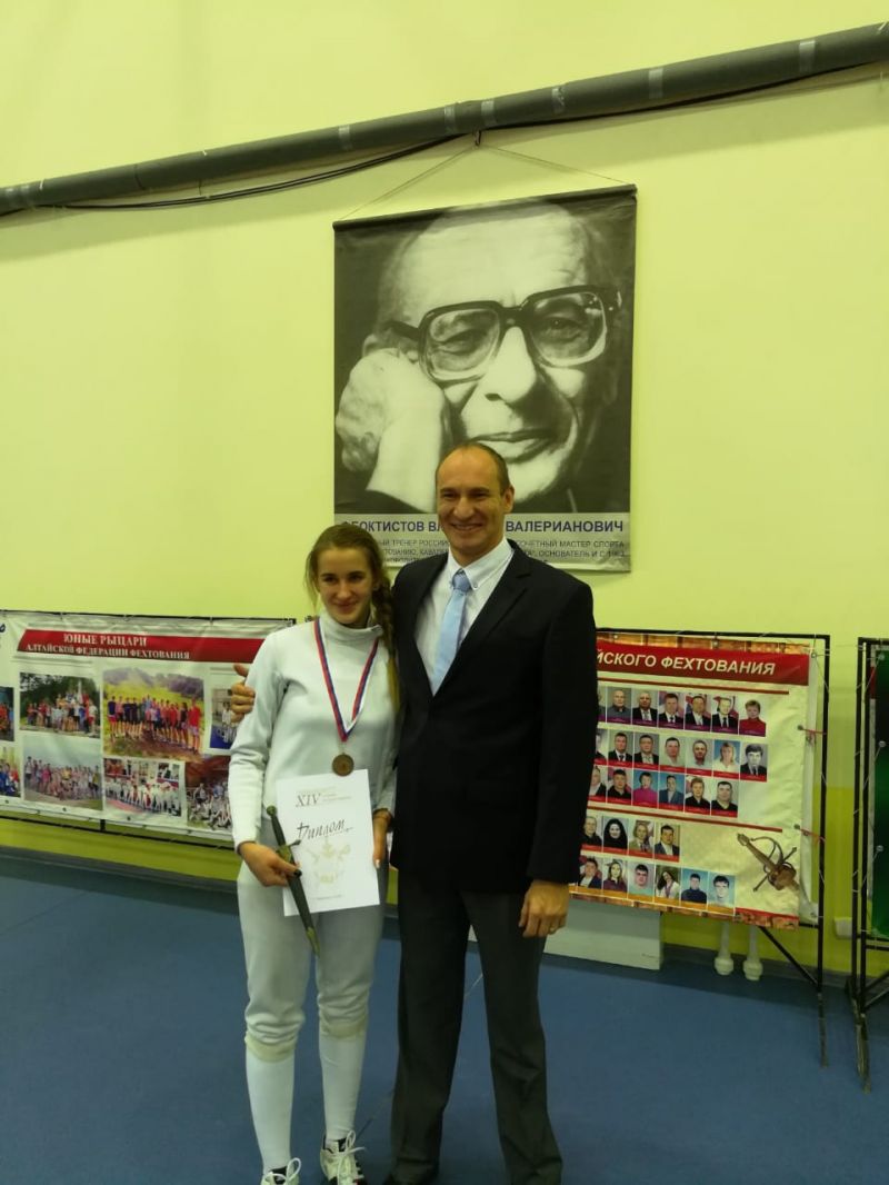 Владимир Валерианович ФЕОКТИСТОВ - заслуженный тренер России, основоположник фехтования в Алтайском крае. Начало развитию мушкетерского искусства на Алтае положила тренировка, которую Владимир Феоктистов провёл в фойе 4-го этажа главного корпуса Алтайского политехнического института (теперь АлтГГУ) для своих первых учеников 17 ноября 1963 года. Это случилось всего через десять дней после того, как выпускник Смоленского института физкультуры трудоустроился в новом для себя городе. А через шесть лет, когда фехтование уже пустило свои корешки в местную почву, в Барнауле благодаря его усилиям состоялся первый на Алтае крупный турнир по фехтованию «Сабля Мамонтова», который со временем стал всесоюзным. С 2005 года эти соревнования получили новое название - «Кубок Владимира Феоктистова». В память об Учителе.