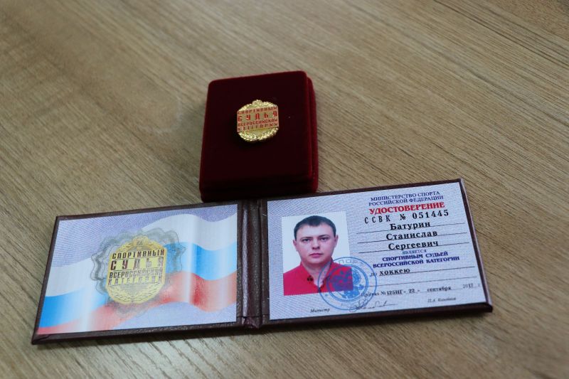 Удостоверение спортивного судьи Всероссийской категории по хоккею вручено Станиславу Сергеевичу Батурину.