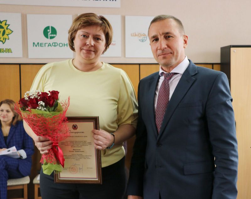 Благодарностью Губернатора Алтайского края за многолетний добросовестный труд, личный вклад в развитие физической культуры, спорта и молодёжной политики в Алтайском крае награждена Галина Анатольевна Михельсон, главный бухгалтер КГБУ СП «СШОР по волейболу «Заря Алтая».