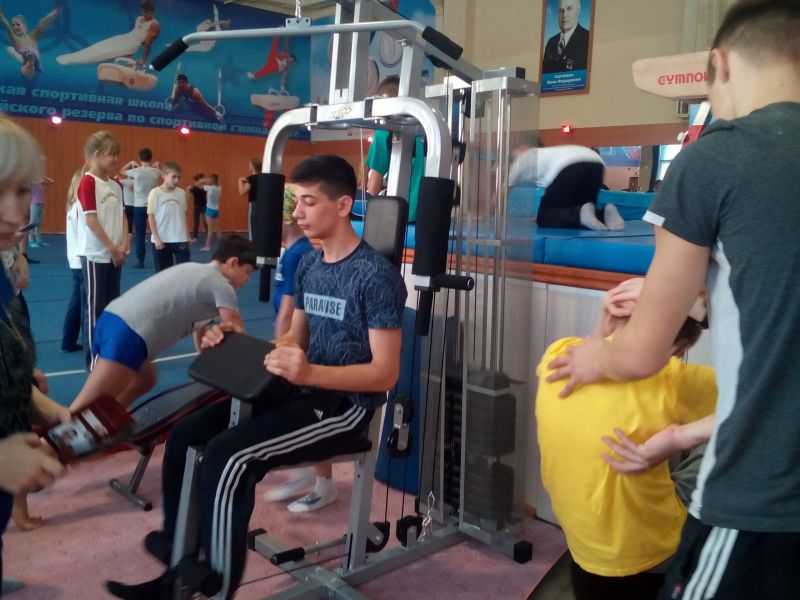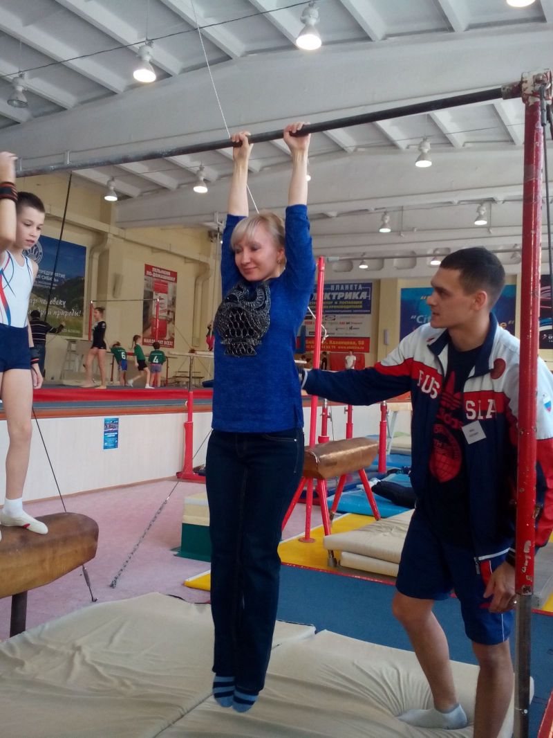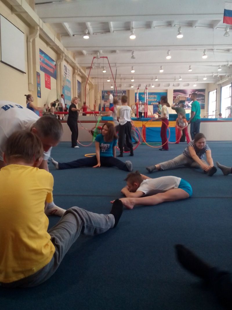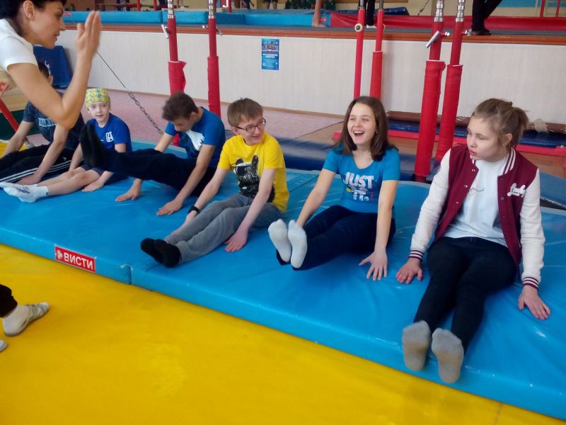 После поздравлений ребята приняли участие в физкультурно-спортивной программе, попробовав свои силы на различных гимнастических снарядах (вольные упражнения на гимнастическом ковре, батут, канат, кольца, акробатическая дорожка, бревно, брусья